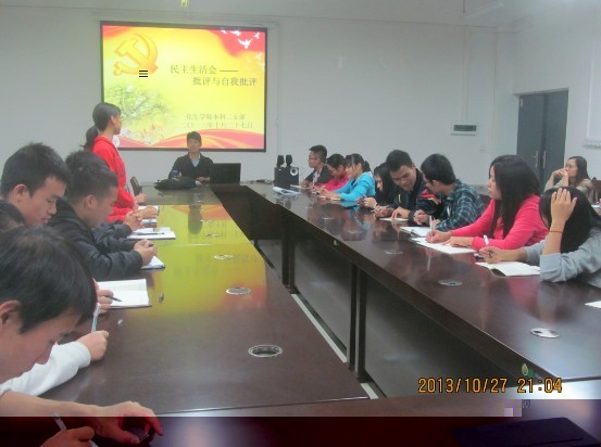 座談會上,何宗輝老師首先帶頭從自身政治理論水平、支部發展宏觀調控、支部日程工作開展等方面進行深入的自我批評,并進一步提出改進措施。之後,支部成員紛紛進行批評與自我批評,提出自己在學習,生活,工作中的不足,同時也對身邊黨員做的不到位的地方進行批評。會議上大家都非常積極,對自我存在的問題剖析得也比較全面,同時受批評的同志态度也很誠懇,并下決心改正自己的缺點和不足,在支部成員的監督下共同進步。