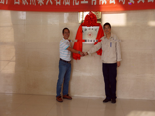 廣西欽州泰興石油化工有限公司實習就業基地揭牌儀式(左為學院代表梁軍書記,右為公司代表吉元來副總經理)