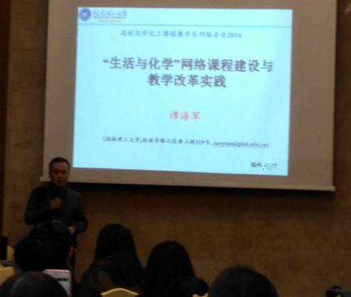 譚海軍老師作“生活與化學網絡課程建設與教學改革實踐”報告